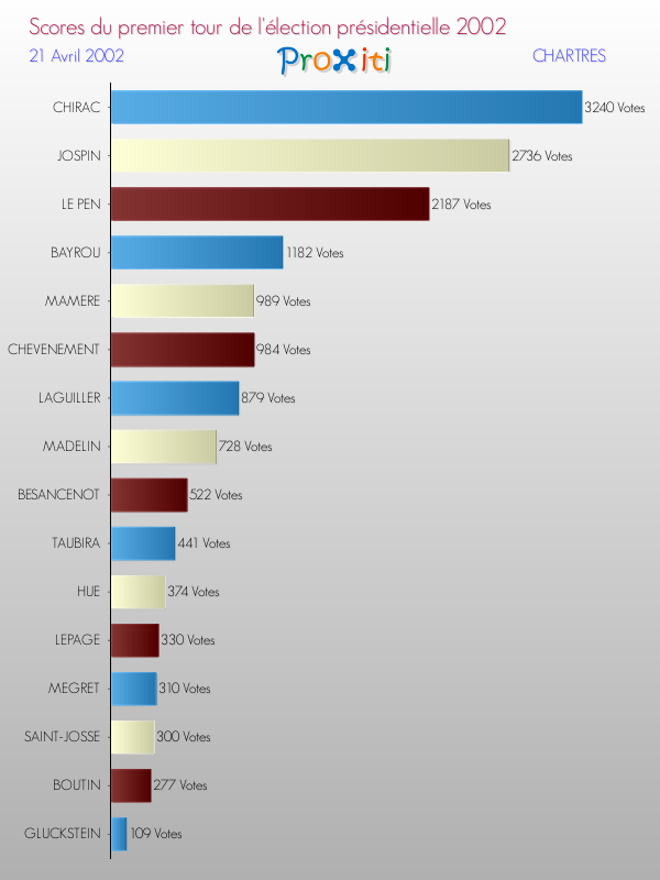 Résultats des votes à l'élection du Président de la République Française 2002 à Chartres