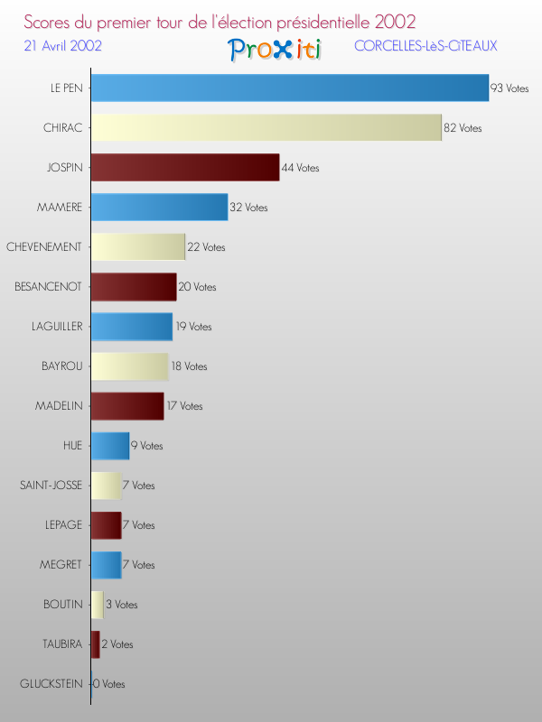 Résultats des votes à l'élection du Président de la République Française 2002 à Corcelles-lès-Cîteaux