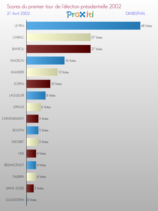 Résultats des votes à l'élection du Président de la République Française 2002 à Dimbsthal