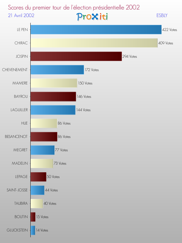 Résultats des votes à l'élection du Président de la République Française 2002 à Esbly