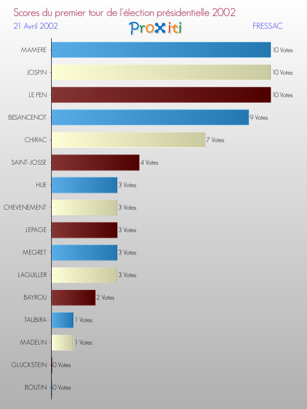 Résultats des votes à l'élection du Président de la République Française 2002 à Fressac