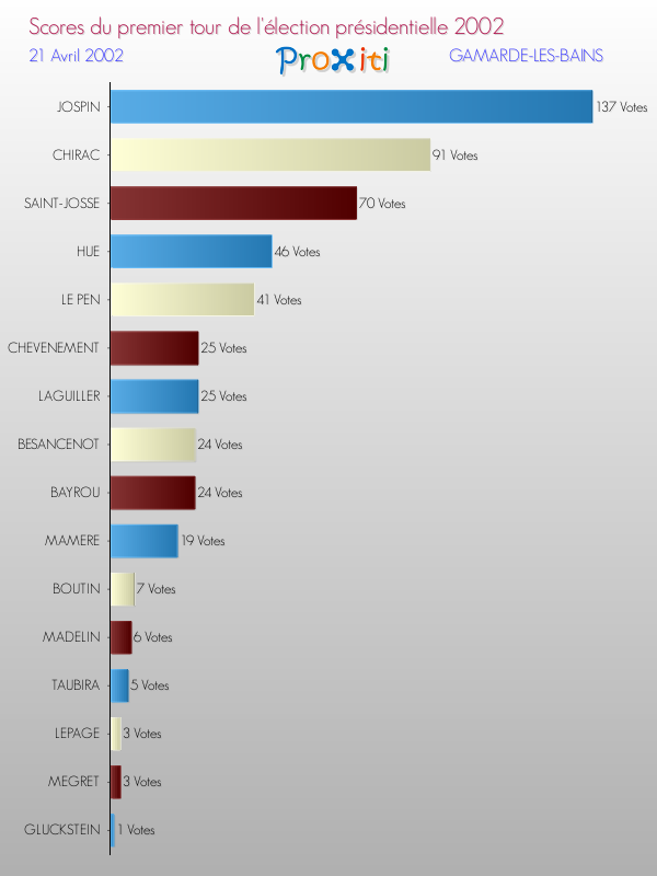 Résultats des votes à l'élection du Président de la République Française 2002 à Gamarde-les-Bains