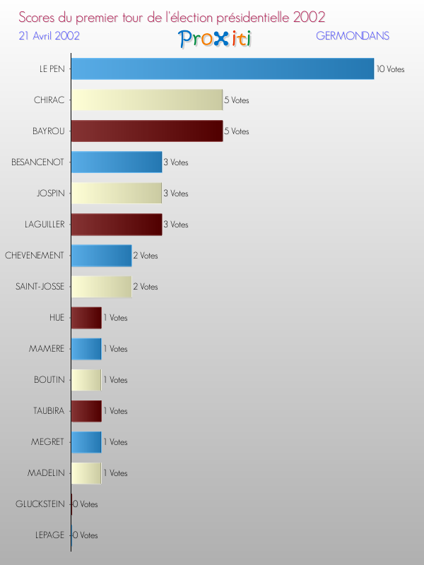 Résultats des votes à l'élection du Président de la République Française 2002 à Germondans
