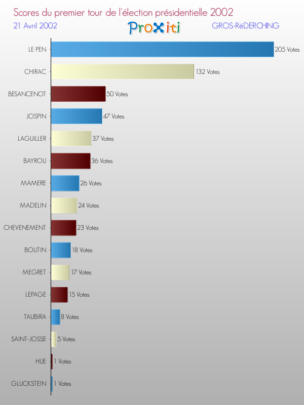 Résultats des votes à l'élection du Président de la République Française 2002 à Gros-Réderching