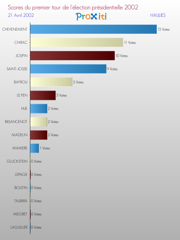 Résultats des votes à l'élection du Président de la République Française 2002 à Haulies