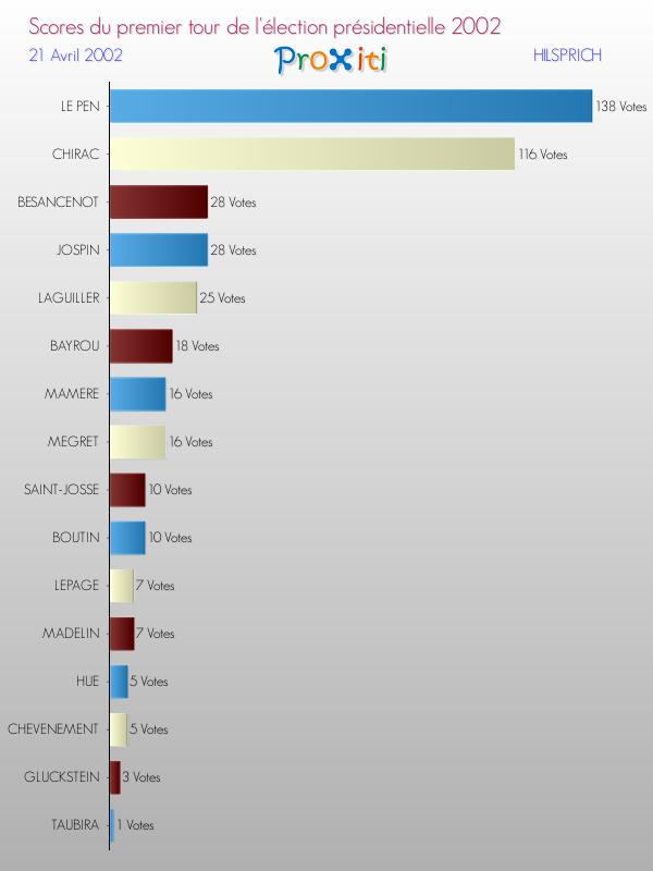 Résultats des votes à l'élection du Président de la République Française 2002 à Hilsprich