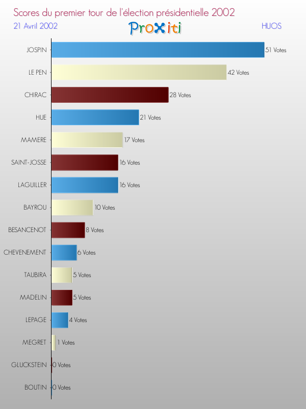 Résultats des votes à l'élection du Président de la République Française 2002 à Huos