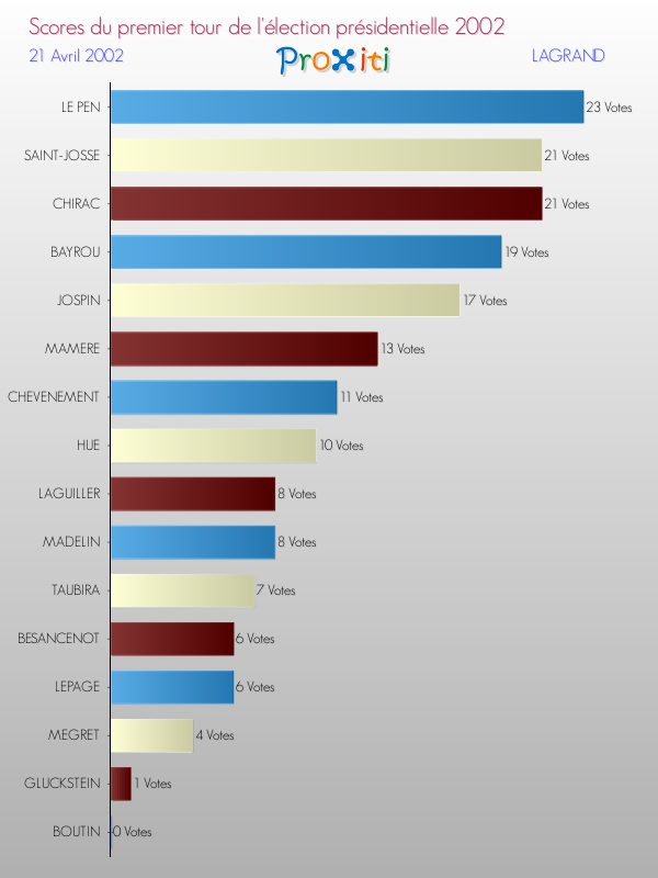 Résultats des votes à l'élection du Président de la République Française 2002 à Lagrand