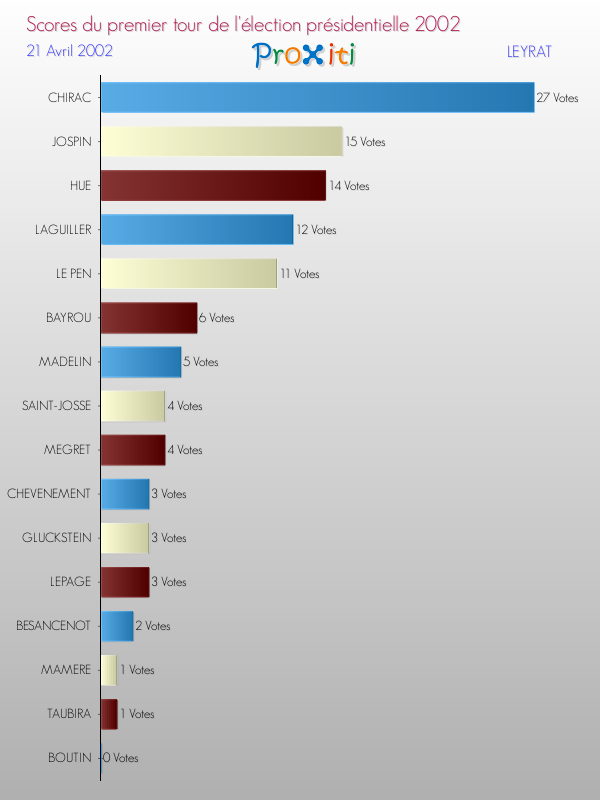 Résultats des votes à l'élection du Président de la République Française 2002 à Leyrat