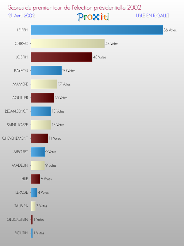 Résultats des votes à l'élection du Président de la République Française 2002 à Lisle-en-Rigault