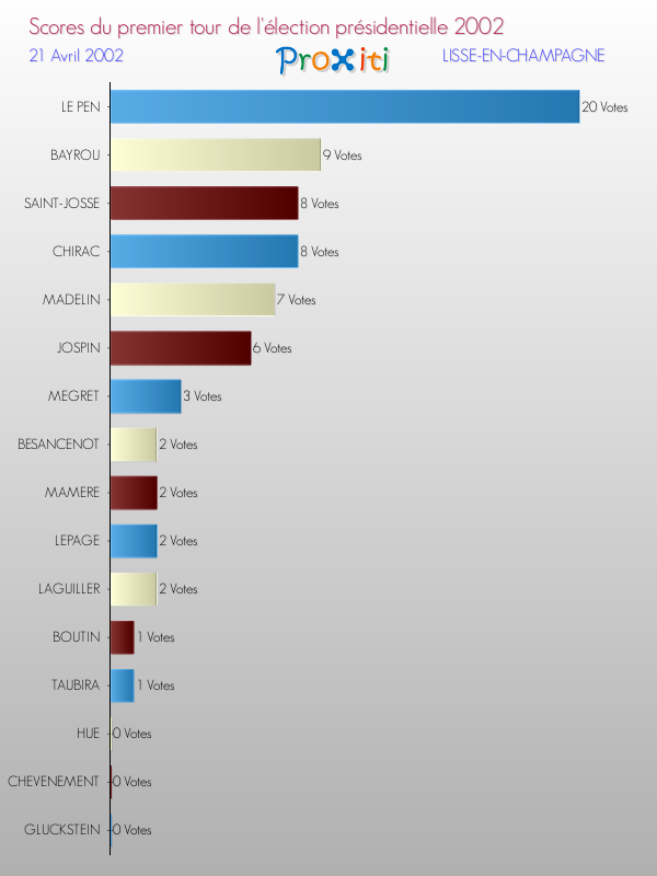 Résultats des votes à l'élection du Président de la République Française 2002 à Lisse-en-Champagne