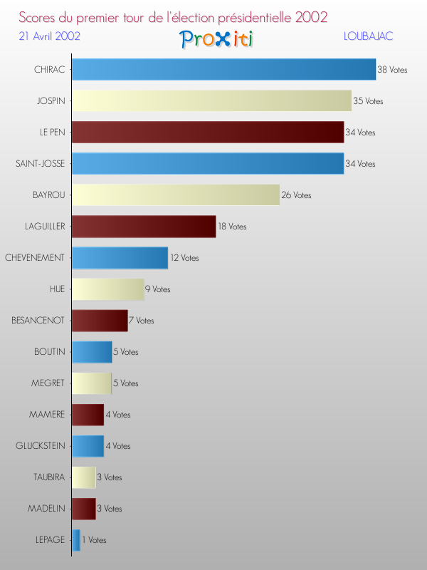 Résultats des votes à l'élection du Président de la République Française 2002 à Loubajac