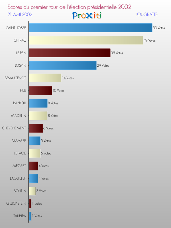 Résultats des votes à l'élection du Président de la République Française 2002 à Lougratte