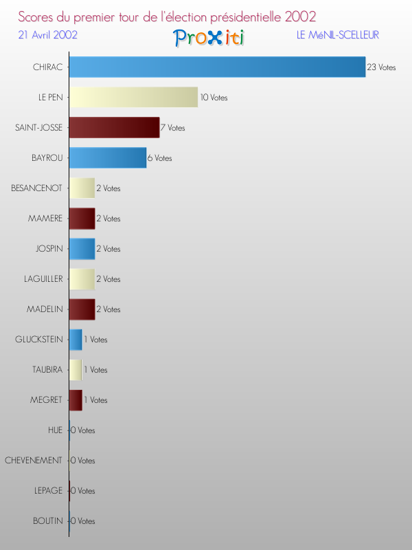 Résultats des votes à l'élection du Président de la République Française 2002 à Le Ménil-Scelleur