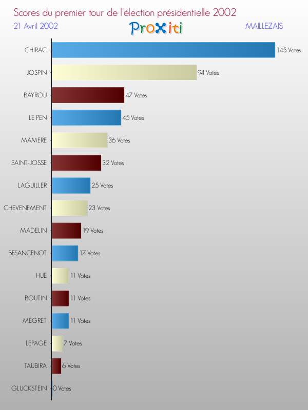 Résultats des votes à l'élection du Président de la République Française 2002 à Maillezais