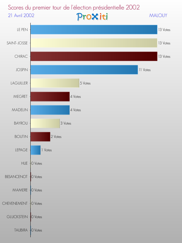 Résultats des votes à l'élection du Président de la République Française 2002 à Malouy