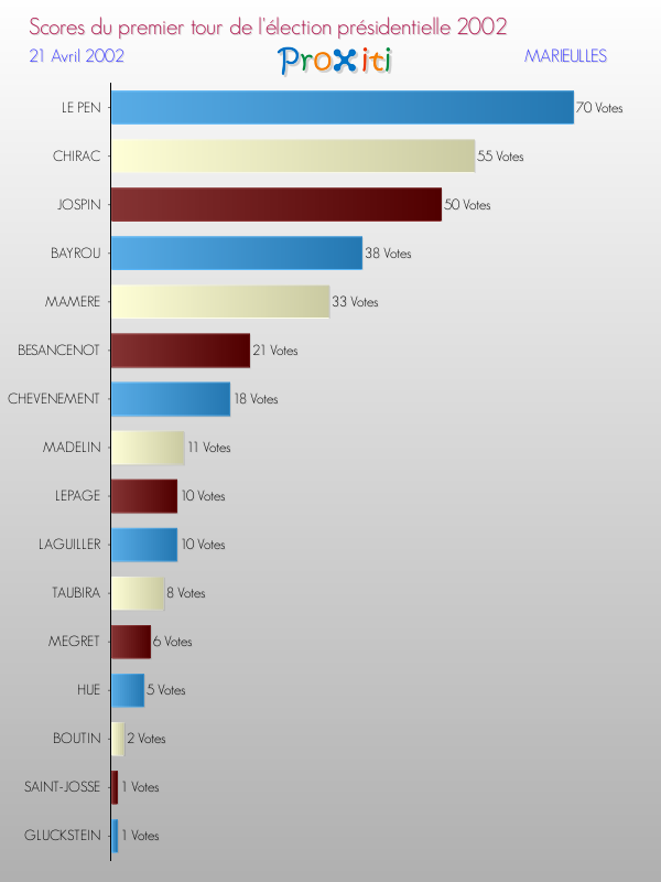 Résultats des votes à l'élection du Président de la République Française 2002 à Marieulles