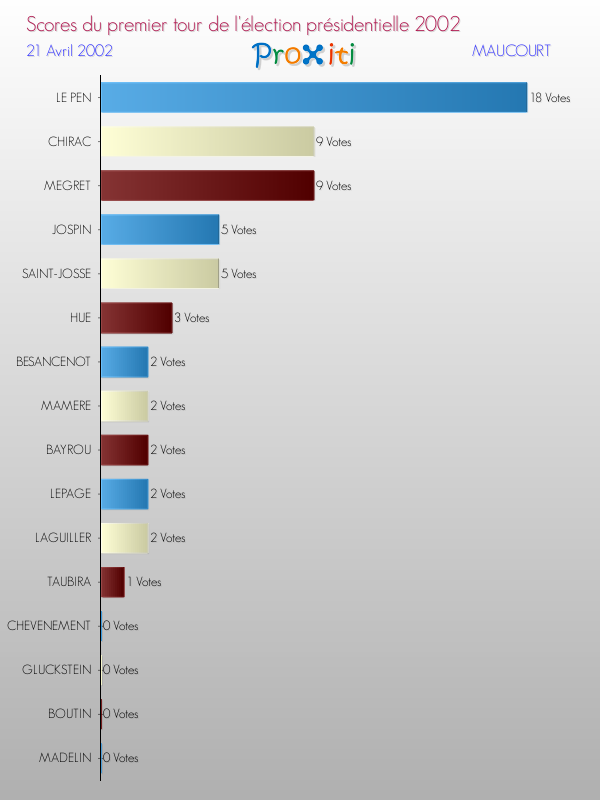 Résultats des votes à l'élection du Président de la République Française 2002 à Maucourt