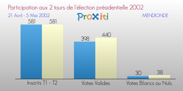 Résultats des votes à l'élection du Président de la République Française 2002 à Mendionde
