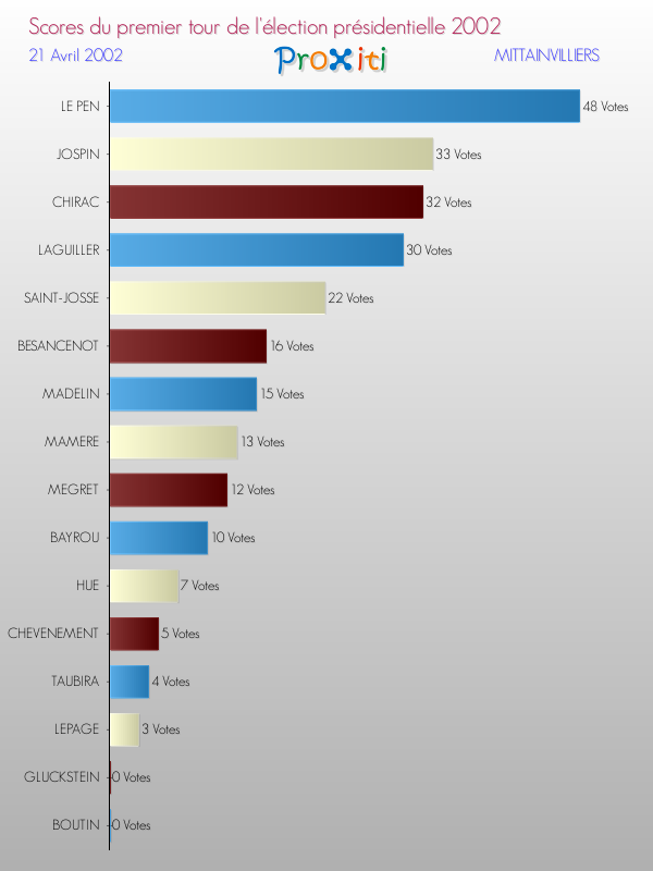 Résultats des votes à l'élection du Président de la République Française 2002 à Mittainvilliers