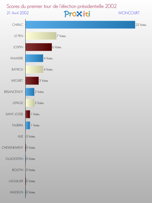 Résultats des votes à l'élection du Président de la République Française 2002 à Moncourt