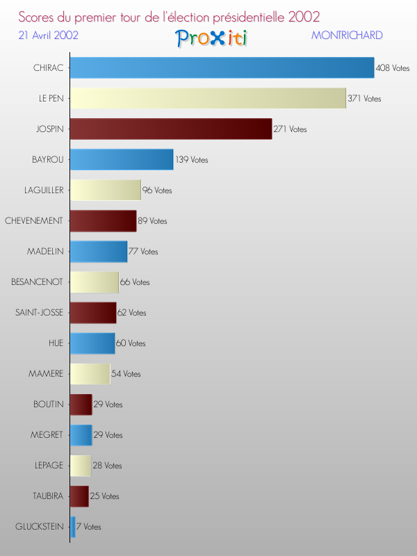 Résultats des votes à l'élection du Président de la République Française 2002 à Montrichard