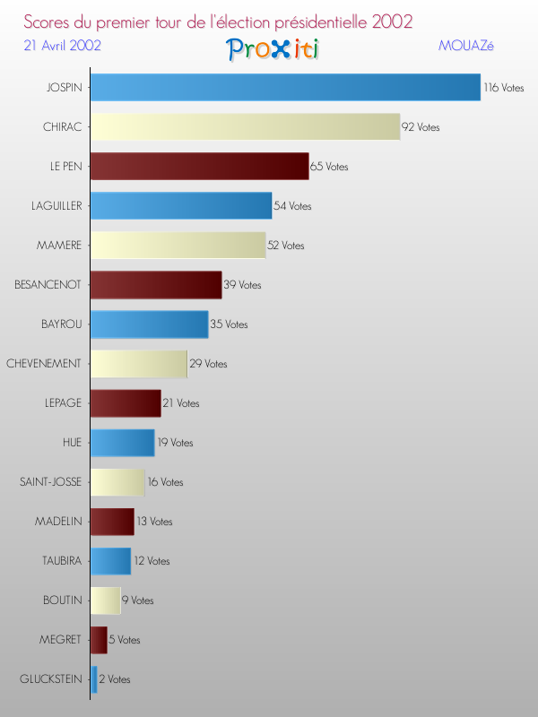 Résultats des votes à l'élection du Président de la République Française 2002 à Mouazé
