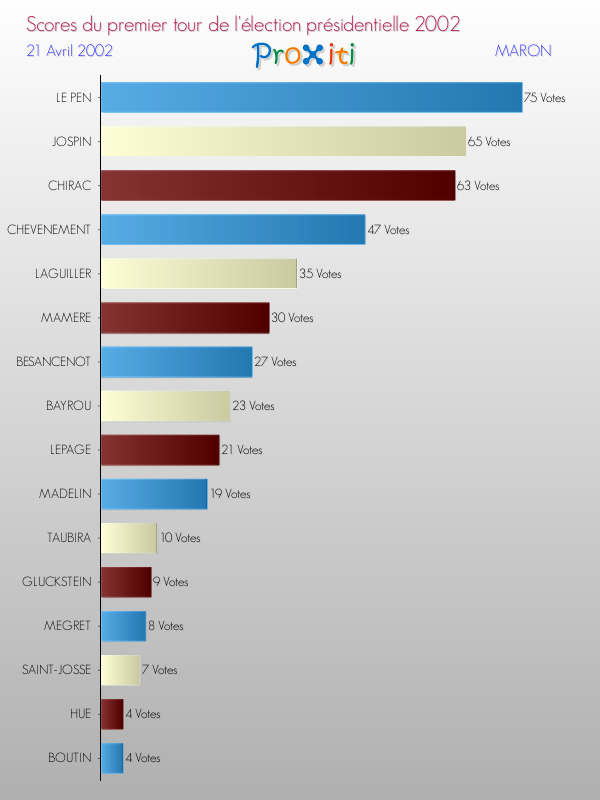 Résultats des votes à l'élection du Président de la République Française 2002 à Maron