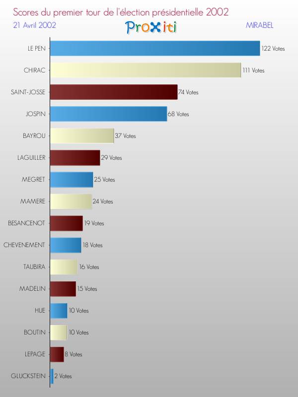 Résultats des votes à l'élection du Président de la République Française 2002 à Mirabel