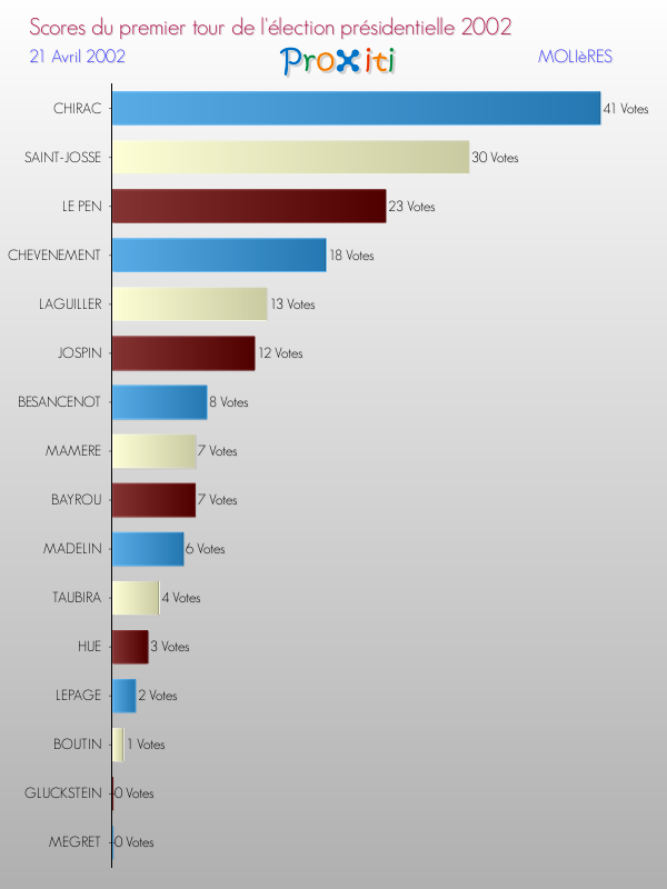 Résultats des votes à l'élection du Président de la République Française 2002 à Molières