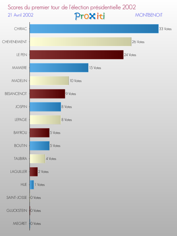 Résultats des votes à l'élection du Président de la République Française 2002 à Montbenoît