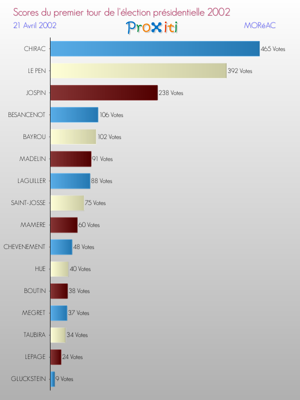 Résultats des votes à l'élection du Président de la République Française 2002 à Moréac