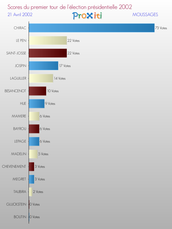 Résultats des votes à l'élection du Président de la République Française 2002 à Moussages