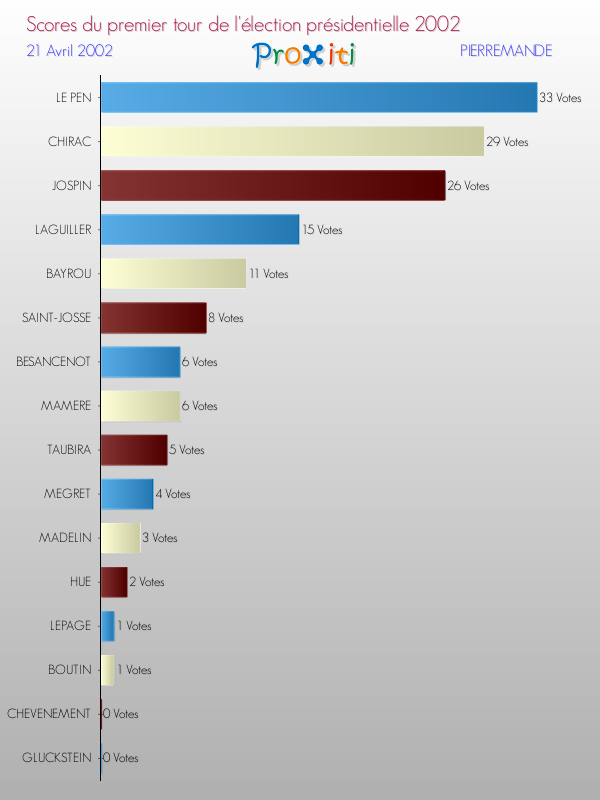 Résultats des votes à l'élection du Président de la République Française 2002 à Pierremande