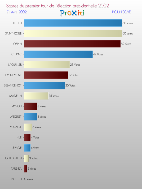 Résultats des votes à l'élection du Président de la République Française 2002 à Polincove