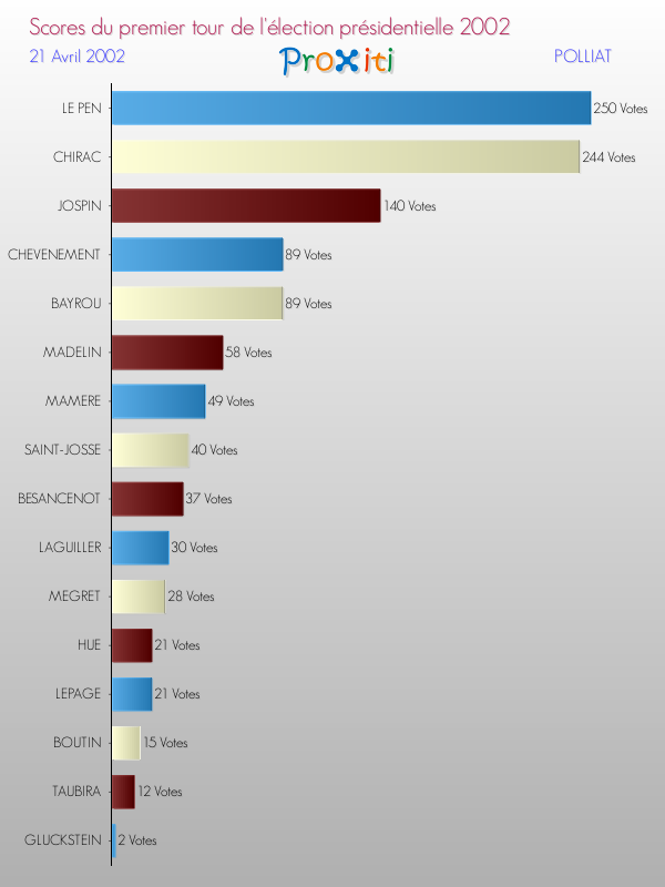 Résultats des votes à l'élection du Président de la République Française 2002 à Polliat