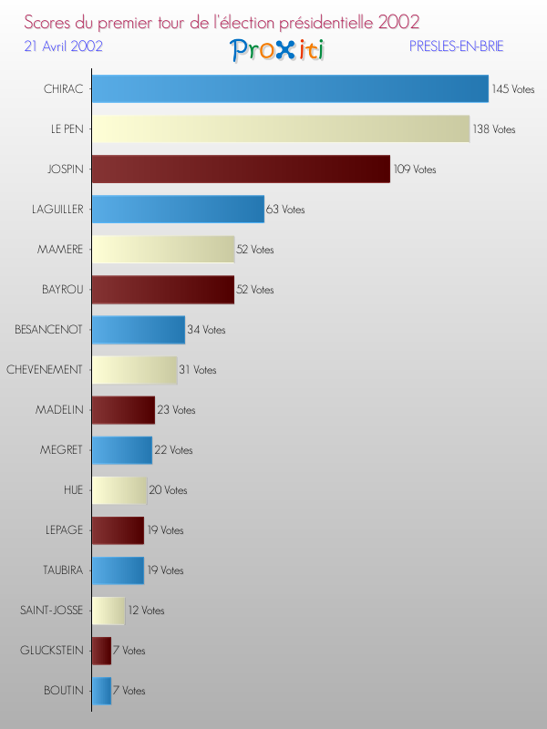 Résultats des votes à l'élection du Président de la République Française 2002 à Presles-en-Brie
