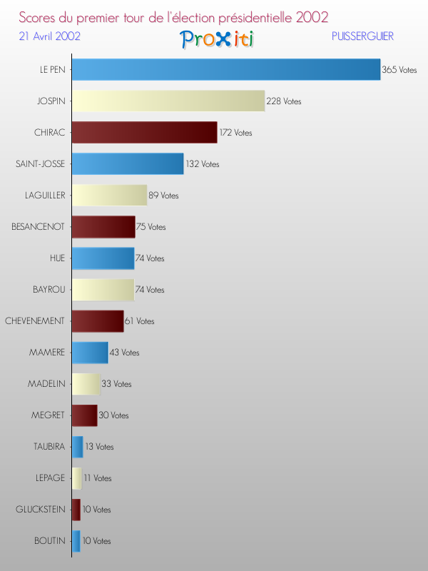 Résultats des votes à l'élection du Président de la République Française 2002 à Puisserguier