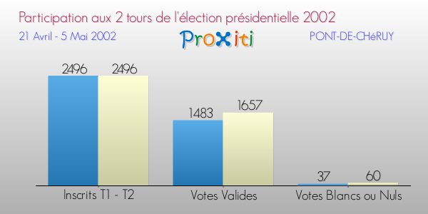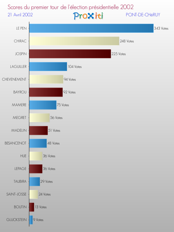 Résultats des votes à l'élection du Président de la République Française 2002 à Pont-de-Chéruy