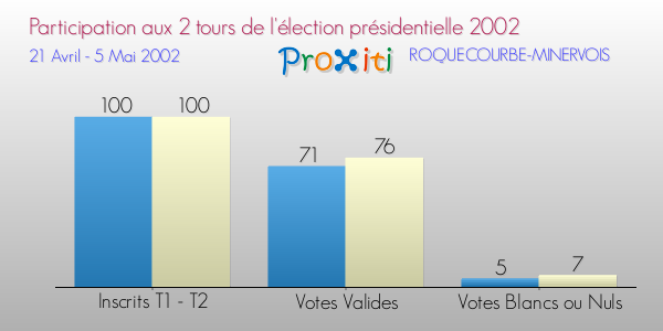 Résultats des votes à l'élection du Président de la République Française 2002 à Roquecourbe-Minervois