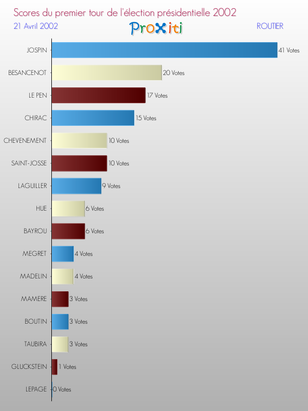 Résultats des votes à l'élection du Président de la République Française 2002 à Routier