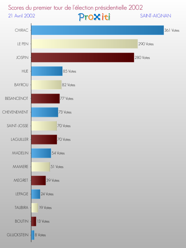Résultats des votes à l'élection du Président de la République Française 2002 à Saint-Aignan