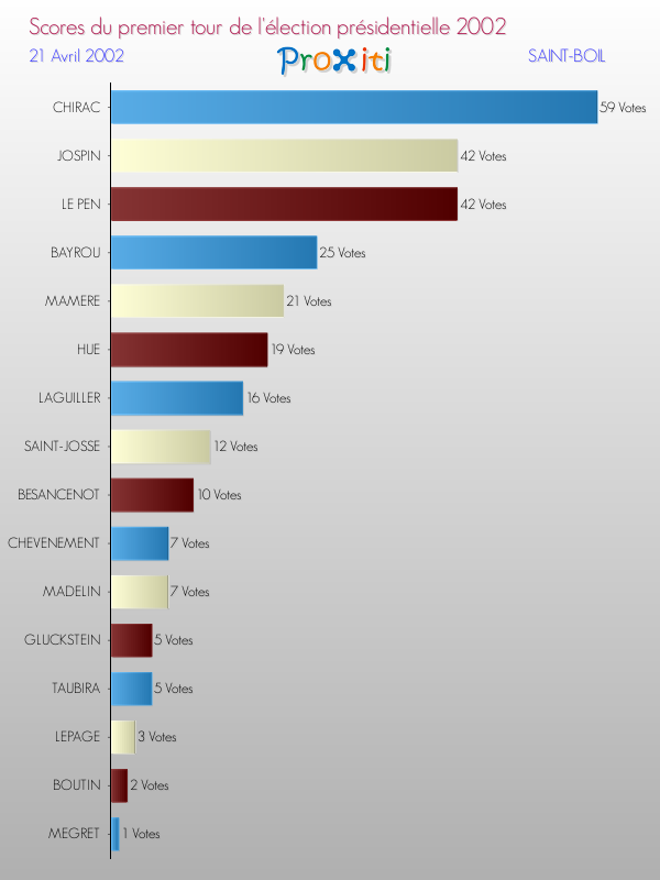 Résultats des votes à l'élection du Président de la République Française 2002 à Saint-Boil
