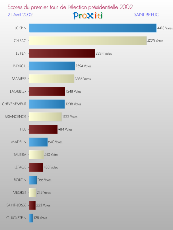 Résultats des votes à l'élection du Président de la République Française 2002 à Saint-Brieuc