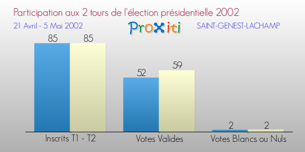 Résultats des votes à l'élection du Président de la République Française 2002 à Saint-Genest-Lachamp