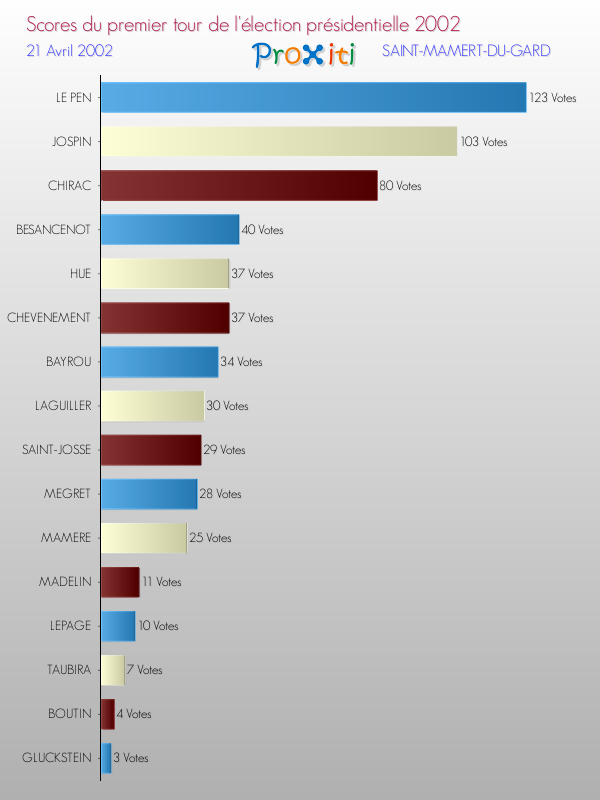 Résultats des votes à l'élection du Président de la République Française 2002 à Saint-Mamert-du-Gard