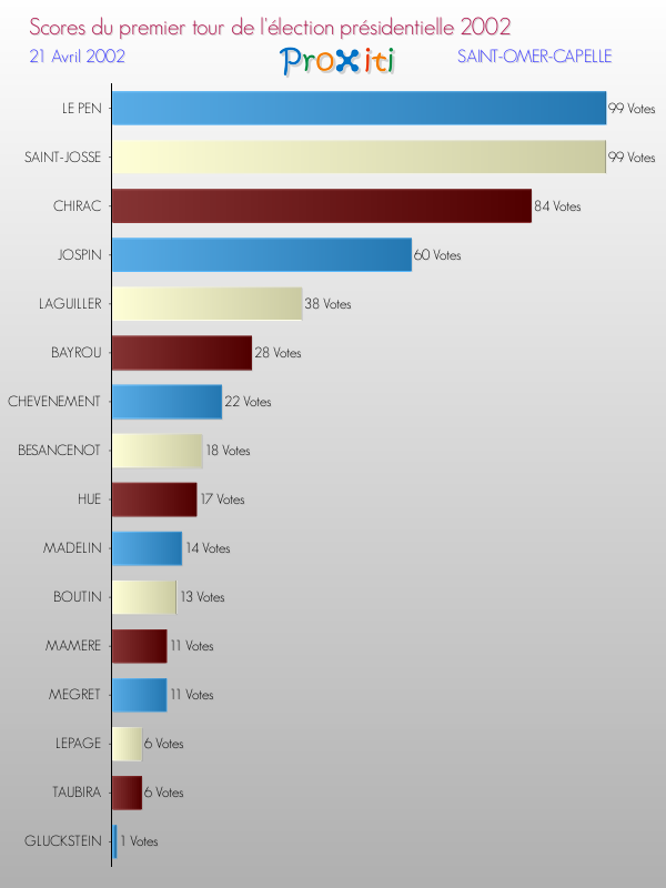 Résultats des votes à l'élection du Président de la République Française 2002 à Saint-Omer-Capelle