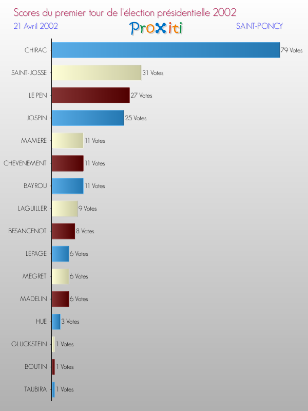 Résultats des votes à l'élection du Président de la République Française 2002 à Saint-Poncy