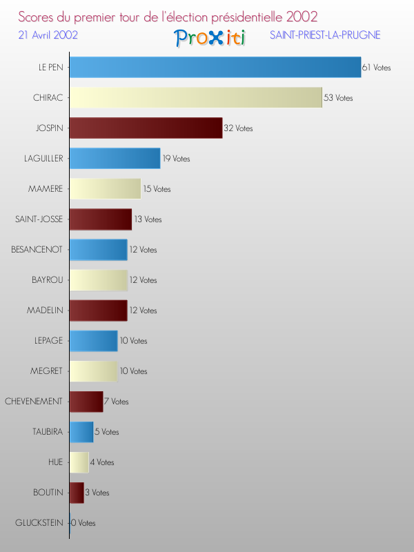 Résultats des votes à l'élection du Président de la République Française 2002 à Saint-Priest-la-Prugne