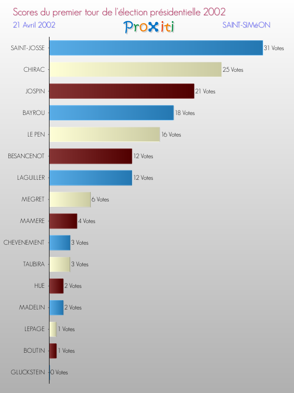 Résultats des votes à l'élection du Président de la République Française 2002 à Saint-Siméon